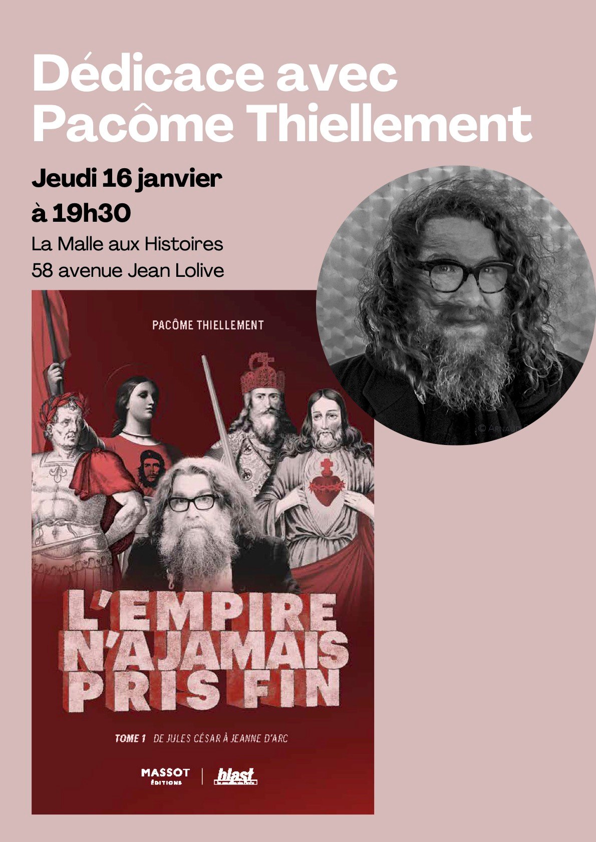 Le rendez-vous de ce soir, Jeudi 16 janvier 2025 à 19h30, soit la rencontre et signature autour de L’Empire n’a jamais pris fin à la librairie La Malle aux Histoires, à Pantin alias Pantruche, n’est pas au 83 mais au 58 avenue Jean Lolive, 93500 Pantin. Métro ligne 5, station : Hoche.