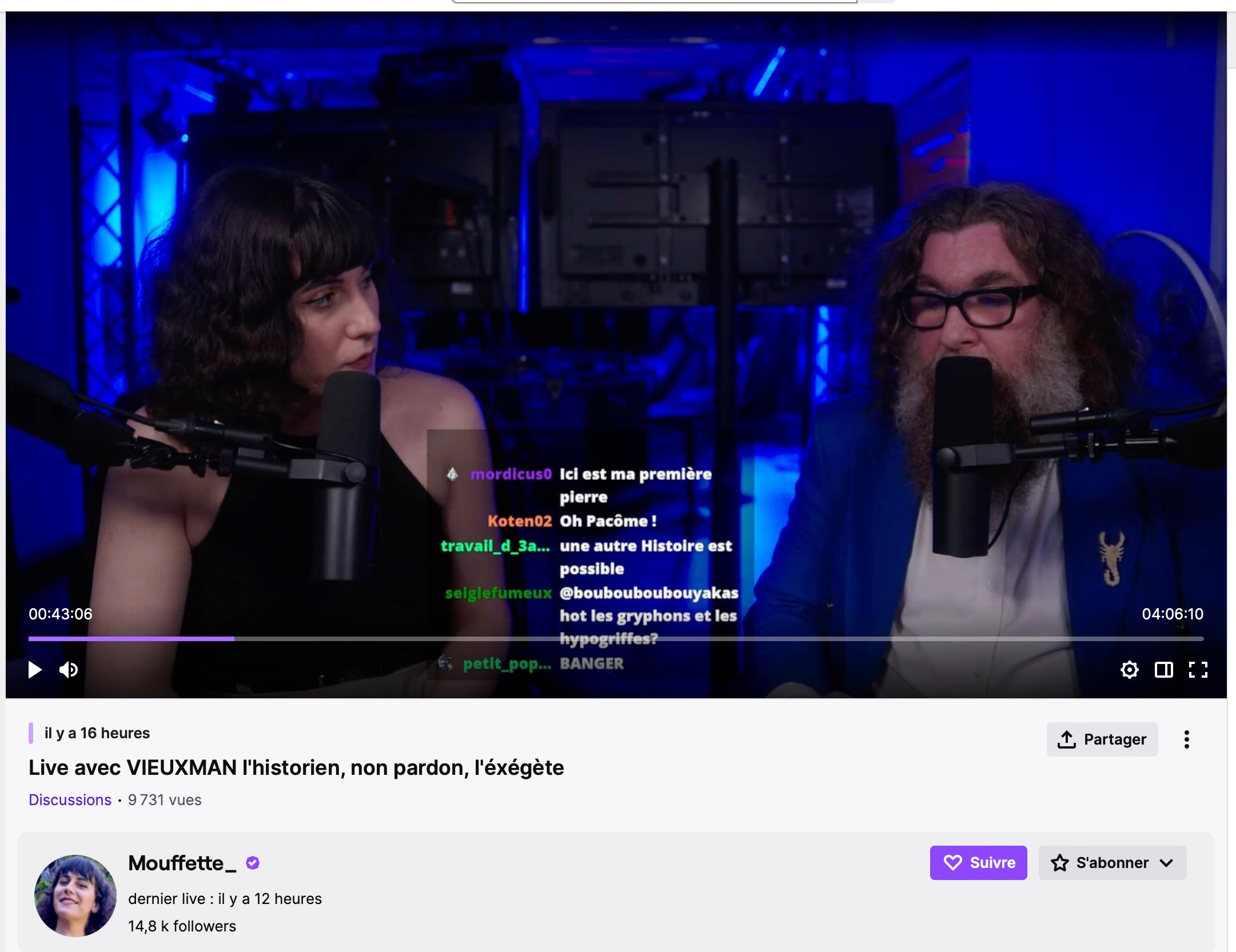 Et puis hier soir, sur Twitch, chez la streameuse Mouffette